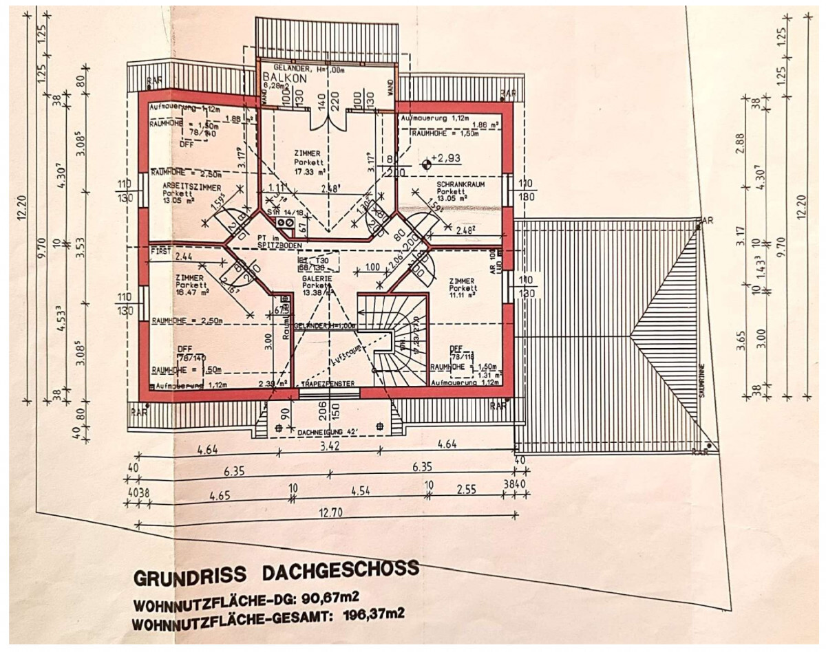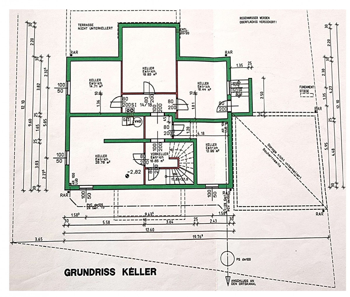 Die Wohnfläche beträgt ca. 197m2 mit zusätzlich ca. 100 m2 Wohnkeller.