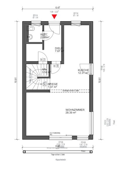 Eine gute Raumaufteilung im Erdgeschoss: geräumiger Vorraum, Toilette, offener Wohn / Essbereich mit integrierter Küche und direktem Ausgang auf die südwestseitige Terrasse und in den Garten sowie das Obergeschoss: 3 Schlafzimmer, ein geräumiges Badezimmer mit Dusche, Wanne und Toilette erlauben eine optimale Raumnutzung. Die Räume sind veränderbar!